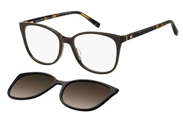 52 TOMMY-HILFIGER TH 2294C 09Q LA 52, Cat Eye σκελετός Acetate, BROWN, φακοί clipon ηλίου, Γυναικείο, Full Rim, 0 γυαλιά ηλίου Γυναικείο