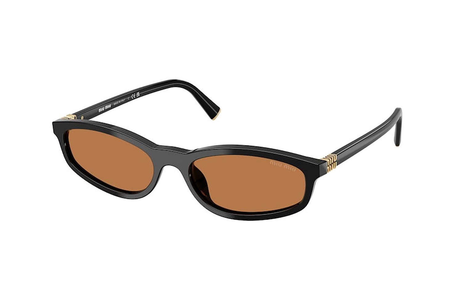 Ο σκελετός τους είναι acetate κατασκευασμένος από acetate και σε απόχρωση μαύρο, black black. Διαθέσιμα μεγέθη (Πλάτος φακού) 54mm. Οι φακοί στα Γυαλια Ηλιου MIU-MIU A06S με κωδικό χρώματος 16K10I, είναι καφέ βιολογικό πολυαμίδιο - brown και 100% απορροφητικοί στην UV ακτινοβολία για απόλυτη προστασία στον ήλιο.