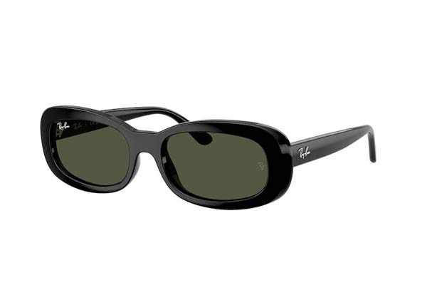 53 Rayban 2221 901/31 53, Oval σκελετός Acetate, Μαύρο, Black Black, φακοί Πράσινο Διαφανές - Green, Γυναικείο, , High Bridge Fit γυαλιά ηλίου Γυναικείο