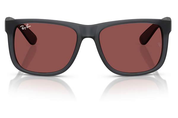 55 Rayban 4165 JUSTIN 687375 55, Τετράγωνο σκελετός Nylon, Γκρι, Grey Opal Grey, φακοί Σκούρο Βιολετί Πολυανθρακικό - Dark Violet, Ανδρικό, Full Rim, High Bridge Fit γυαλιά ηλίου Ανδρικό