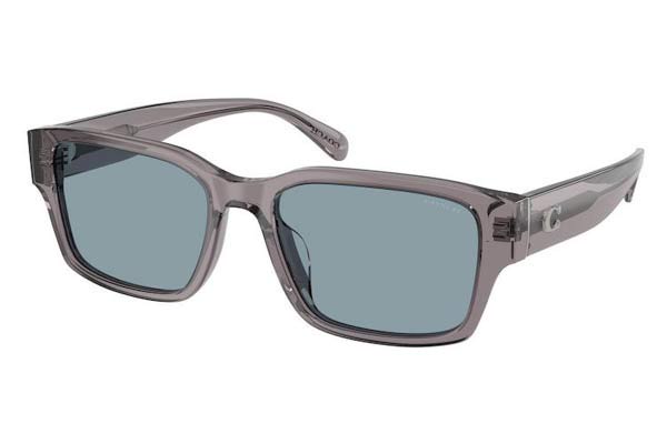 Coach 8441U CBY96 553772 55, Τετράγωνο σκελετός Acetate, Γκρι, Grey Transparent Grey, φακοί Μονόχρωμο Ανοιχτό Μπλε Πολυαμίδιο - Light Blue Solid, Ανδρικό, Full Rim, Universal Fit γυαλιά ηλίου Ανδρικό