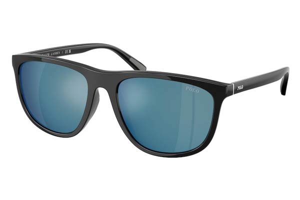 Polo-Ralph-Lauren 4231U 500155 57, Pillow σκελετός Injected, Μαύρο, Black Shiny Black, φακοί Μπλε με Καθρέφτη Πολυανθρακικό - Mirror Blue, Ανδρικό, Full Rim, Universal Fit γυαλιά ηλίου Ανδρικό