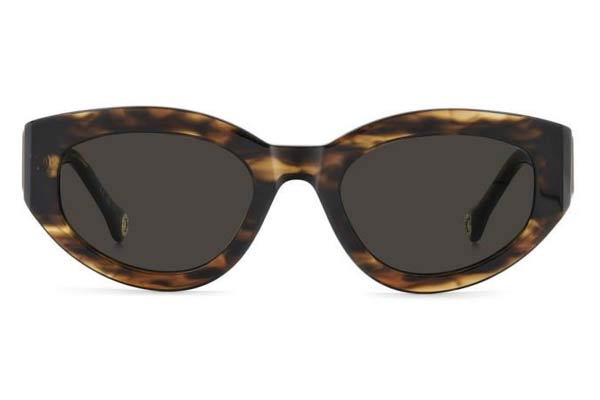 CAROLINA-HERRERA HER 0370S EX4 IR 52, Oval σκελετός Acetate, BROWN HORN, φακοί GREY, Γυναικείο, Full Rim, 0 γυαλιά ηλίου Γυναικείο