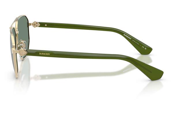 Burberry 3166 110982 60, Aviator σκελετός Μεταλλο, Χρυσό, Gold Light Gold, φακοί Petrol Green Mirror Silver Πολυαμίδιο - Petrol Green Mirror Silver, Ανδρικό, Full Rim, Adjustable Nosepads γυαλιά ηλίου Ανδρικό