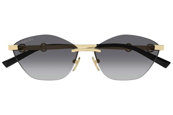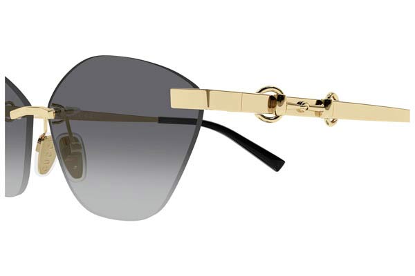 Gucci GG2050S 002 59 Frame Μεταλλο χρυσό, φακοί Γκρι degradee, Γυναικείο, Rimless γυαλιά ηλίου . Concept inspired by the equestrian world, featuring a glasant construction and the iconic horsebit detail passing through the temple. Geometric cat-eyed shape. Optical version in a gold galvanic, some skus present the enamel detail on the temples. Γυναικείο