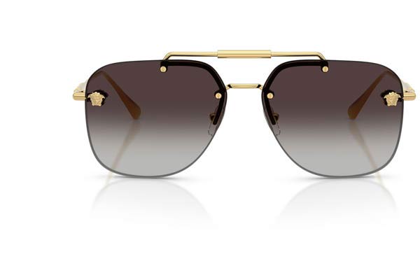 Versace 2296 100284 60, Τετράγωνο σκελετός Μεταλλο, Χρυσό, Gold Gold, φακοί Γκρι Ντεγκραντέ Βιολογικό Πολυαμίδιο - Grey Gradient, Γυναικείο, Rimless, Adjustable Nosepads γυαλιά ηλίου Γυναικείο