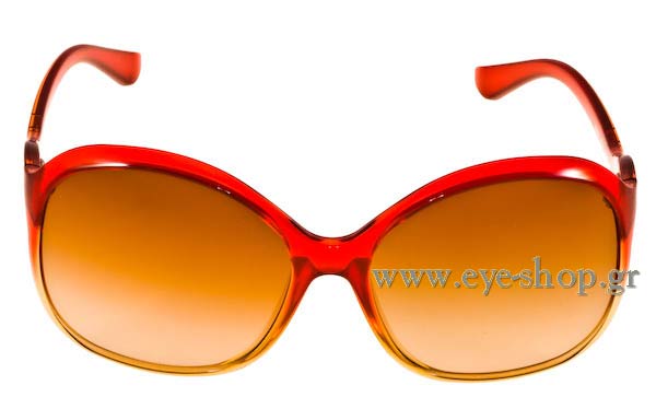Γυαλια ηλιου με σκελετό plastic κατασκευασμένο από acetate και σε απόχρωση κόκκινο πάνω - μελί κάτω , φακοί καφέ degradee.