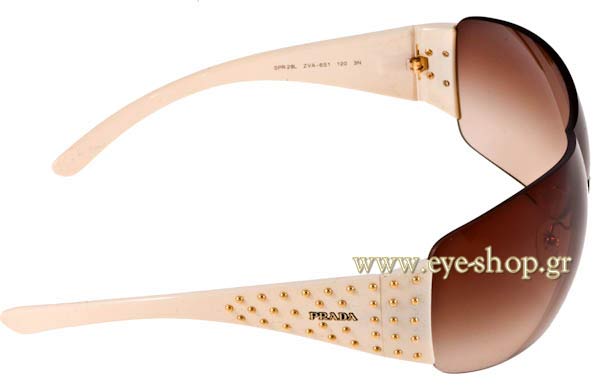 Ο σκελετός τους είναι plastic κατασκευασμένος από acetate και σε απόχρωση μπεζ με χρυσά τρουκς - μάσκα καφέ degradee. Διαθέσιμα μεγέθη (Πλάτος φακού) 0mm. Οι φακοί στα Γυαλια Ηλιου PRADA 29LS με κωδικό χρώματος ZVA6S1, είναι 0 και 100% απορροφητικοί στην UV ακτινοβολία για απόλυτη προστασία στον ήλιο.