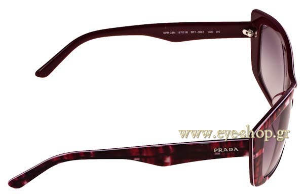 Ο σκελετός τους είναι plastic κατασκευασμένος από acetate και σε απόχρωση κόκκινο. Διαθέσιμα μεγέθη (Πλάτος φακού) 57mm. Οι φακοί στα Γυαλια Ηλιου PRADA 03NS με κωδικό χρώματος BF13M1, είναι γκρι degradee και 100% απορροφητικοί στην UV ακτινοβολία για απόλυτη προστασία στον ήλιο.