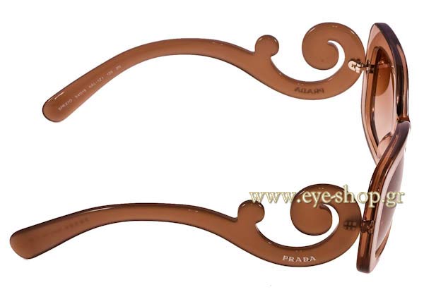 Ο σκελετός τους είναι plastic κατασκευασμένος από acetate και σε απόχρωση καφέ διαφανές. Διαθέσιμα μεγέθη (Πλάτος φακού) 54mm. Οι φακοί στα Γυαλια Ηλιου PRADA 27OS με κωδικό χρώματος KAL1Z1 MINIMAL BAROQUE, είναι καφέ degradee και 100% απορροφητικοί στην UV ακτινοβολία για απόλυτη προστασία στον ήλιο.