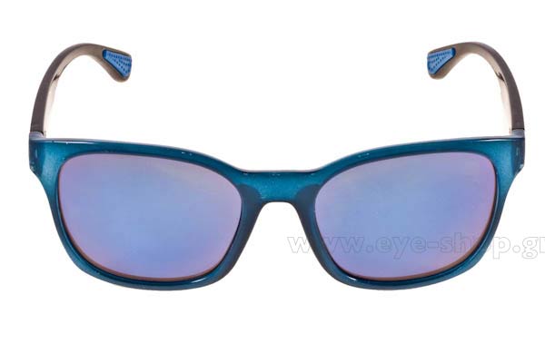 Γυαλια ηλιου με σκελετό plastic κατασκευασμένο από acetate και σε απόχρωση μπλε με μαυρους βραχίονες.