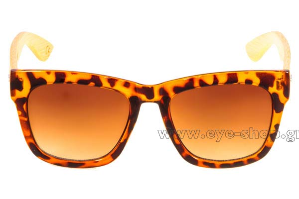 Γυαλια ηλιου με σκελετό plastic κατασκευασμένο από bamboo - acetete και σε απόχρωση λεοπαρ με βραχίονες από φυσικό bamboo.