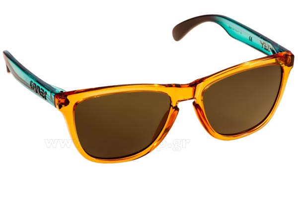☆ Original ☆ Oakley Frogskins 9013 43 Ochre Dark Grey Ø55 σκελετός acetate καφέ διαφανές με πετρολ βραχιονες, φακοί g15 οργανικοί Unisex Full Γυαλιά ηλίου sunglasses
