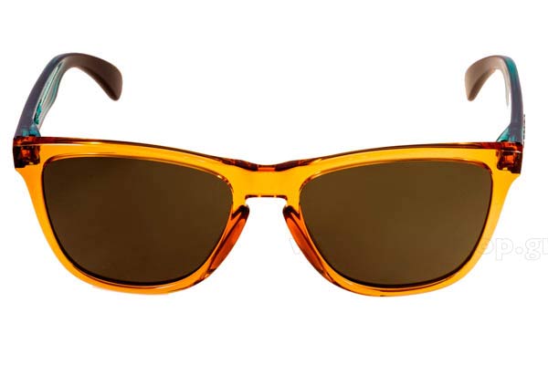 Ο σκελετός τους είναι plastic κατασκευασμένος από acetate και σε απόχρωση καφέ διαφανές με πετρολ βραχιονες. Διαθέσιμα μεγέθη (Πλάτος φακού) 55mm. Οι φακοί στα Γυαλια Ηλιου OAKLEY FROGSKINS-9013 με κωδικό χρώματος 43 OCHRE DARK GREY, είναι g15 οργανικοί και 100% απορροφητικοί στην UV ακτινοβολία για απόλυτη προστασία στον ήλιο.