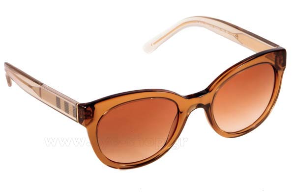 Ο σκελετός τους είναι plastic κατασκευασμένος από acetate και σε απόχρωση καφέ διαφανές. Διαθέσιμα μεγέθη (Πλάτος φακού) 52mm. Οι φακοί στα Γυαλια Ηλιου BURBERRY 4210 με κωδικό χρώματος 356413, είναι καφέ degradee και 100% απορροφητικοί στην UV ακτινοβολία για απόλυτη προστασία στον ήλιο.
