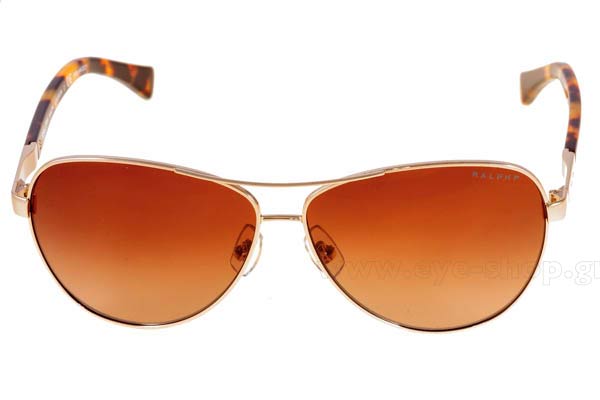 • Τα Ralph by ralph lauren 4116 είναι γυναικεία Γυαλια Ηλιου , σε σχήμα aviator. Ο σκελετός τους είναι metal κατασκευασμένος από μεταλλο και σε απόχρωση χρυσό καφέ. Διαθέσιμα μεγέθη (Πλάτος φακού) 60mm. Οι φακοί στα Γυαλια Ηλιου RALPH-BY-RALPH-LAUREN 4116 με κωδικό χρώματος 3138T5 POLARIZED, είναι καφέ degradee polarized και 100% απορροφητικοί στην UV ακτινοβολία για απόλυτη προστασία στον ήλιο.