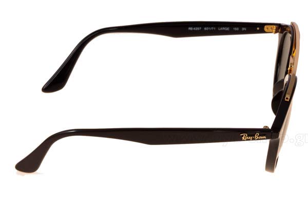Ο σκελετός τους είναι plastic κατασκευασμένος από acetate και σε απόχρωση μαύρο χρυσό. Διαθέσιμα μεγέθη (Πλάτος φακού) 53mm. Οι φακοί στα Γυαλια Ηλιου RAYBAN 4257 με κωδικό χρώματος 601/71 LARGE, είναι g15 οργανικοί και 100% απορροφητικοί στην UV ακτινοβολία για απόλυτη προστασία στον ήλιο.