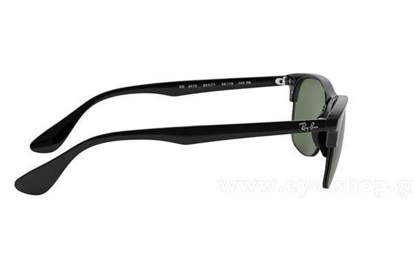 Ο σκελετός τους είναι plastic κατασκευασμένος από acetate και σε απόχρωση μαύρο. Διαθέσιμα μεγέθη (Πλάτος φακού) 54mm. Οι φακοί στα Γυαλια Ηλιου RAYBAN 4419 με κωδικό χρώματος 601/71, είναι γκριζοπράσινο και 100% απορροφητικοί στην UV ακτινοβολία για απόλυτη προστασία στον ήλιο.
