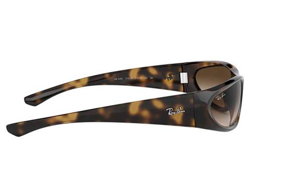 Ο σκελετός τους είναι plastic κατασκευασμένος από acetate και σε απόχρωση καφέ ταρταρούγα light havana. Διαθέσιμα μεγέθη (Πλάτος φακού) 57mm. Οι φακοί στα Γυαλια Ηλιου RAYBAN 4332 με κωδικό χρώματος 710/13, είναι καφέ degradee και 100% απορροφητικοί στην UV ακτινοβολία για απόλυτη προστασία στον ήλιο.