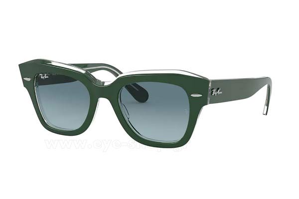 Ο σκελετός τους είναι plastic κατασκευασμένος από acetate και σε απόχρωση πράσινο green on transparent. Διαθέσιμα μεγέθη (Πλάτος φακού) 49mm. Οι φακοί στα Γυαλια Ηλιου RAYBAN 2186-STATE-STREET με κωδικό χρώματος 12953M, είναι blue gradient grey και 100% απορροφητικοί στην UV ακτινοβολία για απόλυτη προστασία στον ήλιο.