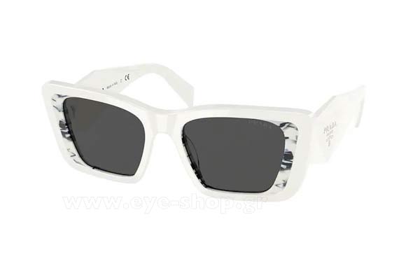 Ο σκελετός τους είναι plastic κατασκευασμένος από acetate και σε απόχρωση white/havana black. Διαθέσιμα μεγέθη (Πλάτος φακού) 51mm. Οι φακοί στα Γυαλια Ηλιου PRADA 08YS με κωδικό χρώματος 02V5S0, είναι dark grey plastic standard 2n b2 trans:10 και 100% απορροφητικοί στην UV ακτινοβολία για απόλυτη προστασία στον ήλιο.