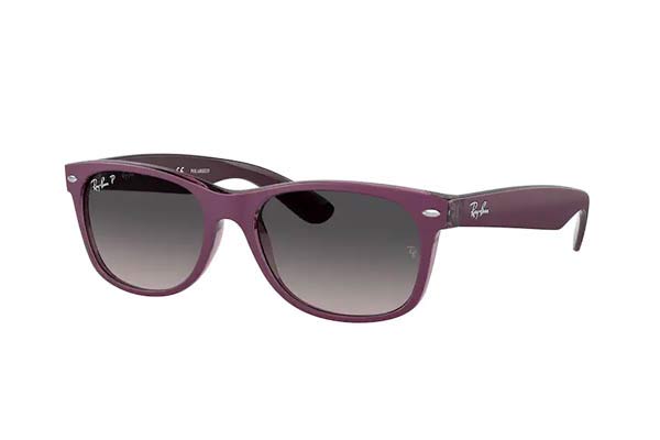 Ο σκελετός τους είναι plastic κατασκευασμένος από acetate και σε απόχρωση matte violet on transparent vi. Διαθέσιμα μεγέθη (Πλάτος φακού) 58mm. Οι φακοί στα Γυαλια Ηλιου RAYBAN 2132-NEW-WAYFARER με κωδικό χρώματος 6606M3, είναι grey gradient polar crystal polarized 3p base 6 trans:18.01 και 100% απορροφητικοί στην UV ακτινοβολία για απόλυτη προστασία στον ήλιο.